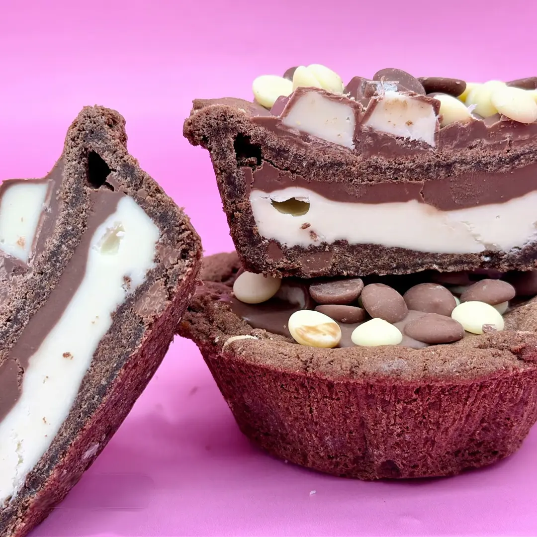 Enjoy the newest addition to our Individual Cookie Pie Family – The Double Choc KINDER Cookie Pie. This treat is perfect for satisfying your sweet tooth.